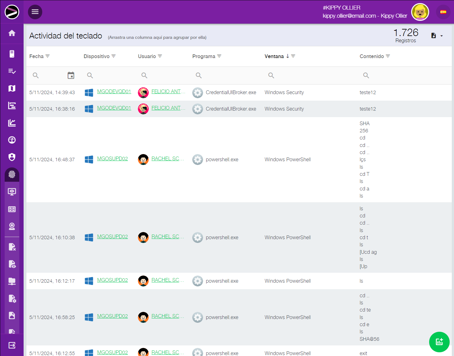 Funciona de forma silenciosa, transparente y remota, almacenando el historial en una base de datos.