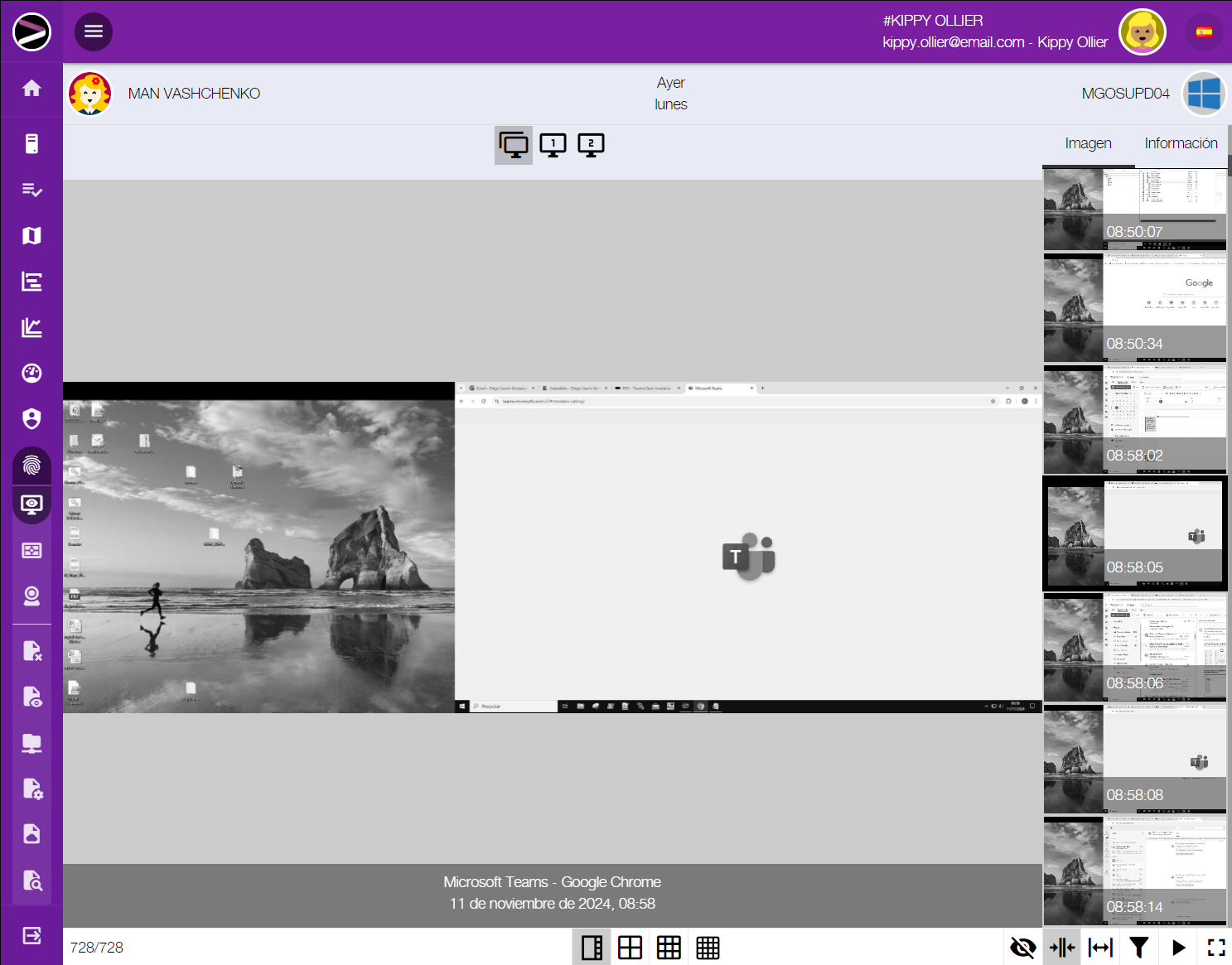 Supervisa todas las acciones del usuario en el dispositivo, capturando todos los recursos.