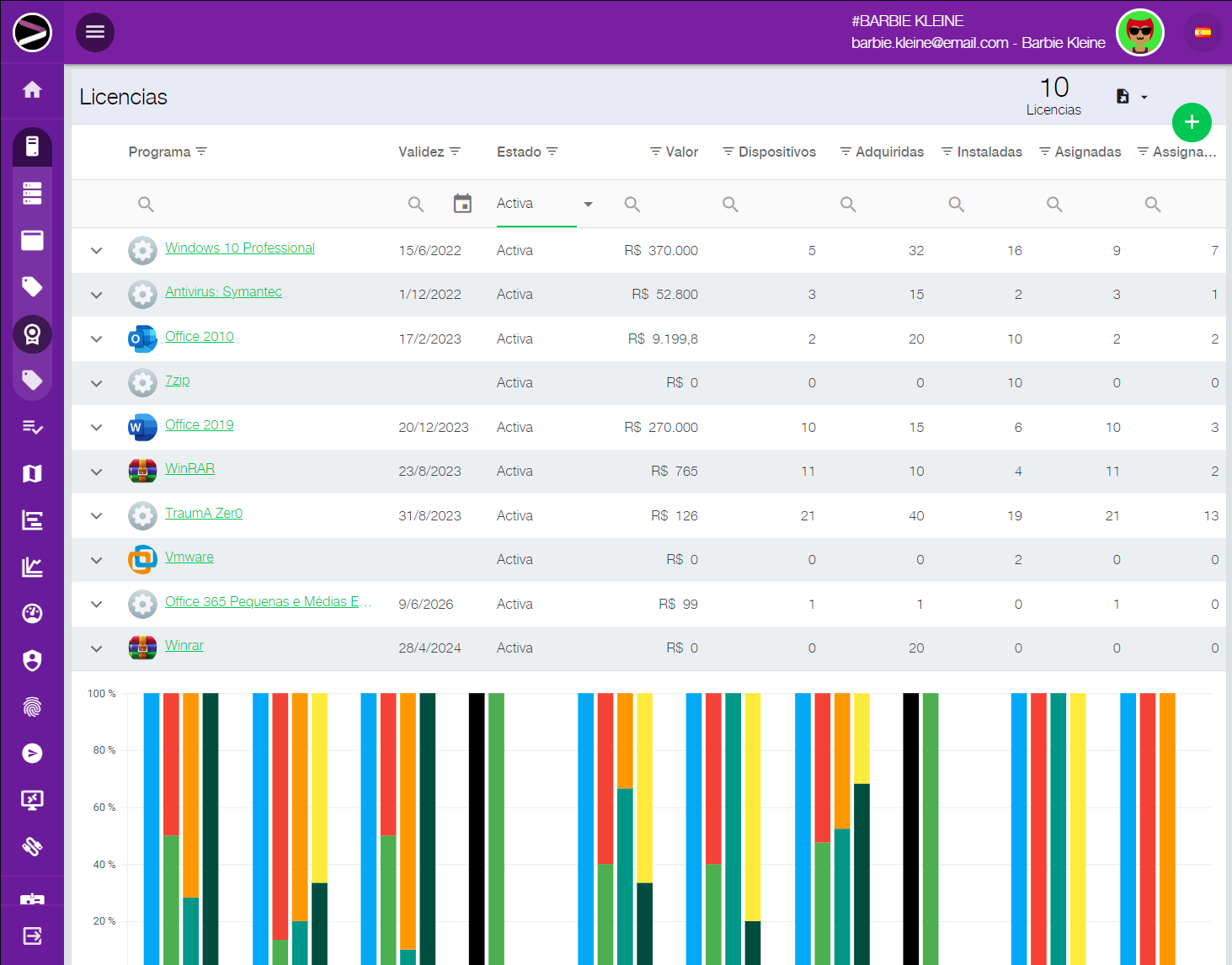 El inventario facilita mucho las cosas y mantiene su red en funcionamiento conforme a la ley. A través de informes, la herramienta permite identificar en qué software invertir y cuántas licencias adquirir, pudiendo reasignarlas de donde no se estén utilizando.