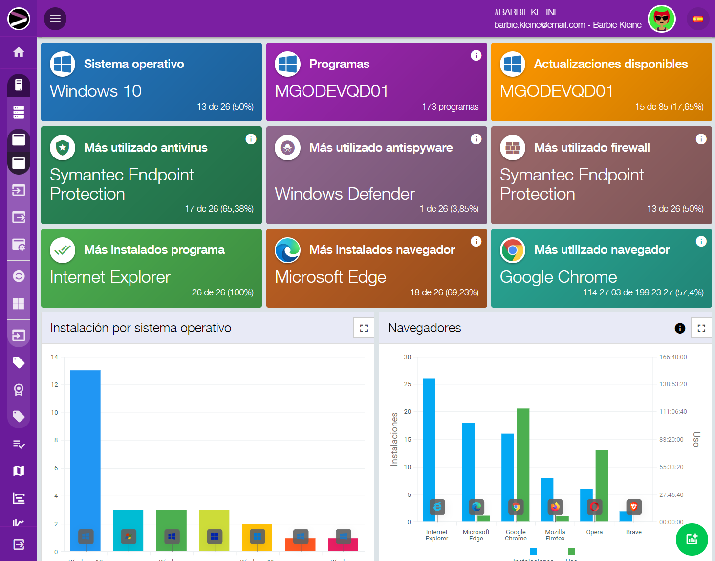 Puede ver el inventario por región, grupo, departamento, exportar sus datos para integrarlos con otros sistemas, todo ello de forma intuitiva con unos pocos clics. Puede buscar fácilmente dónde está instalado cierto software, su versión, y tomar decisiones estratégicas encaminadas a reducir sus costes de licencias.