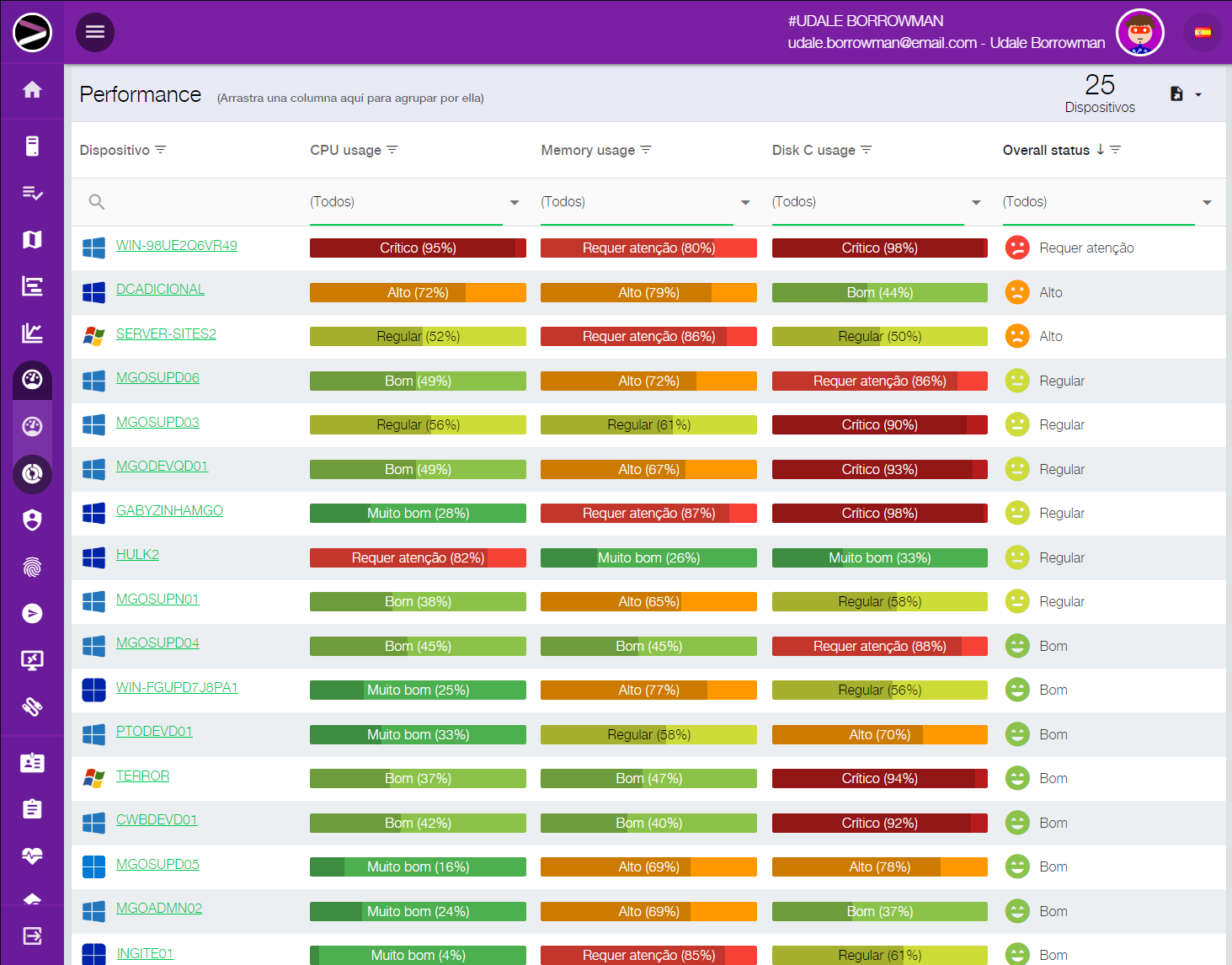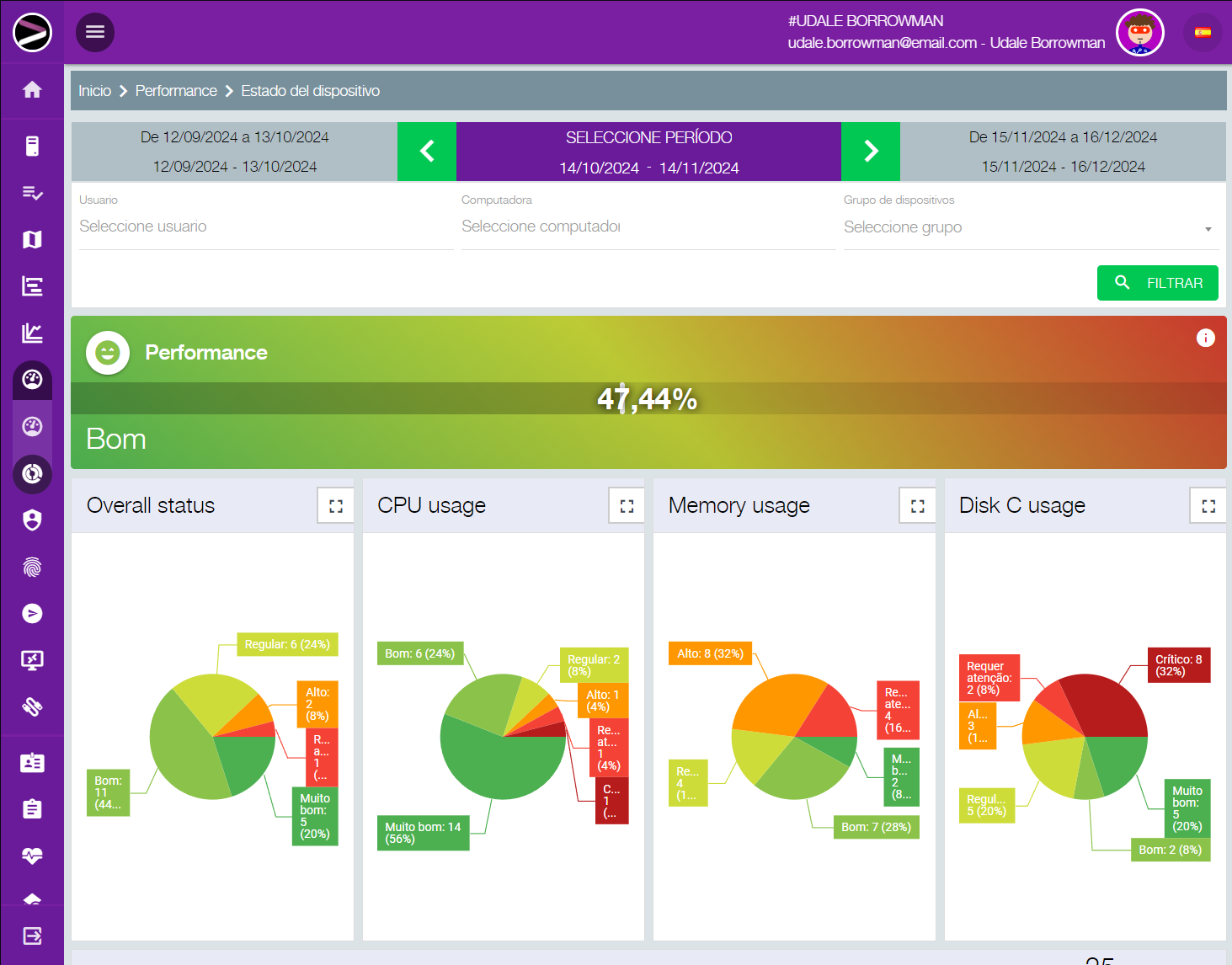 Para responder a estas preguntas, Performance, nuestra inteligencia artificial, monitoriza continuamente todos los dispositivos, ofreciéndote información sobre el estado de cada uno y el uso que le da cada empleado.