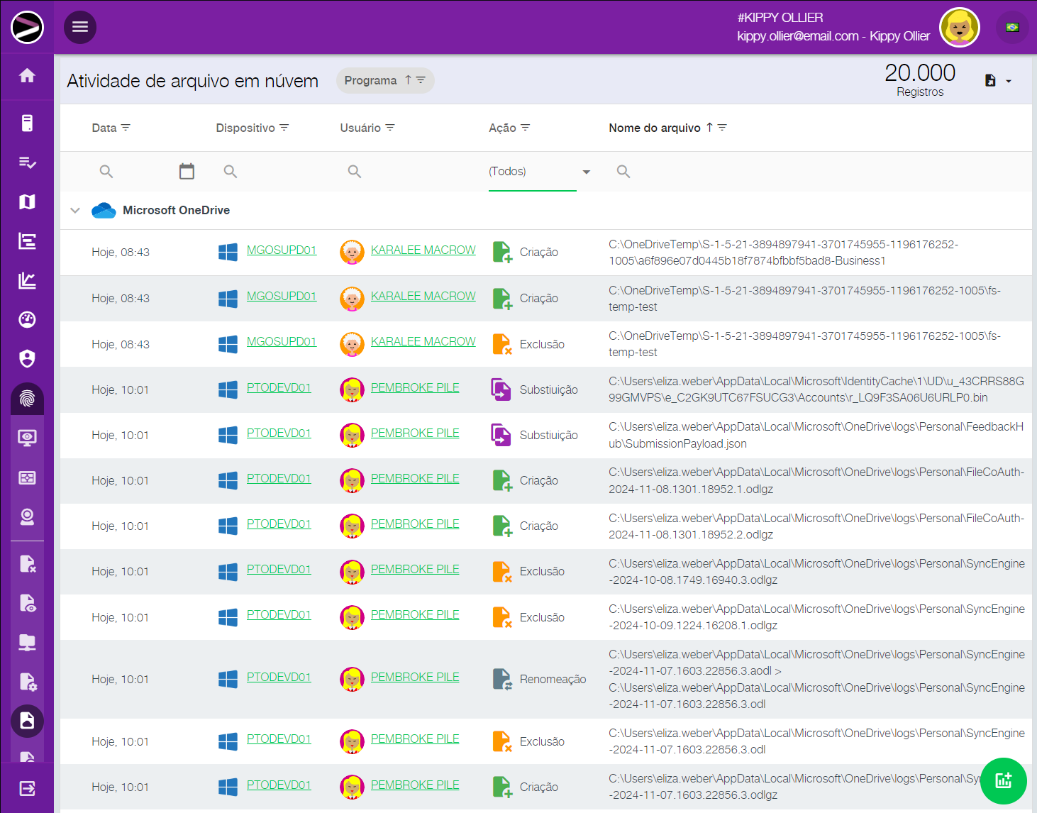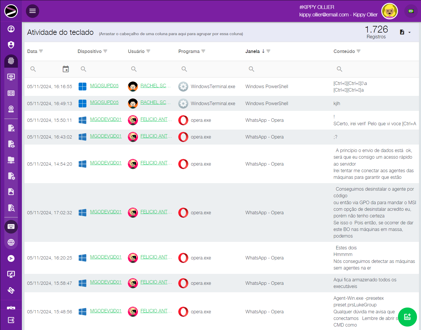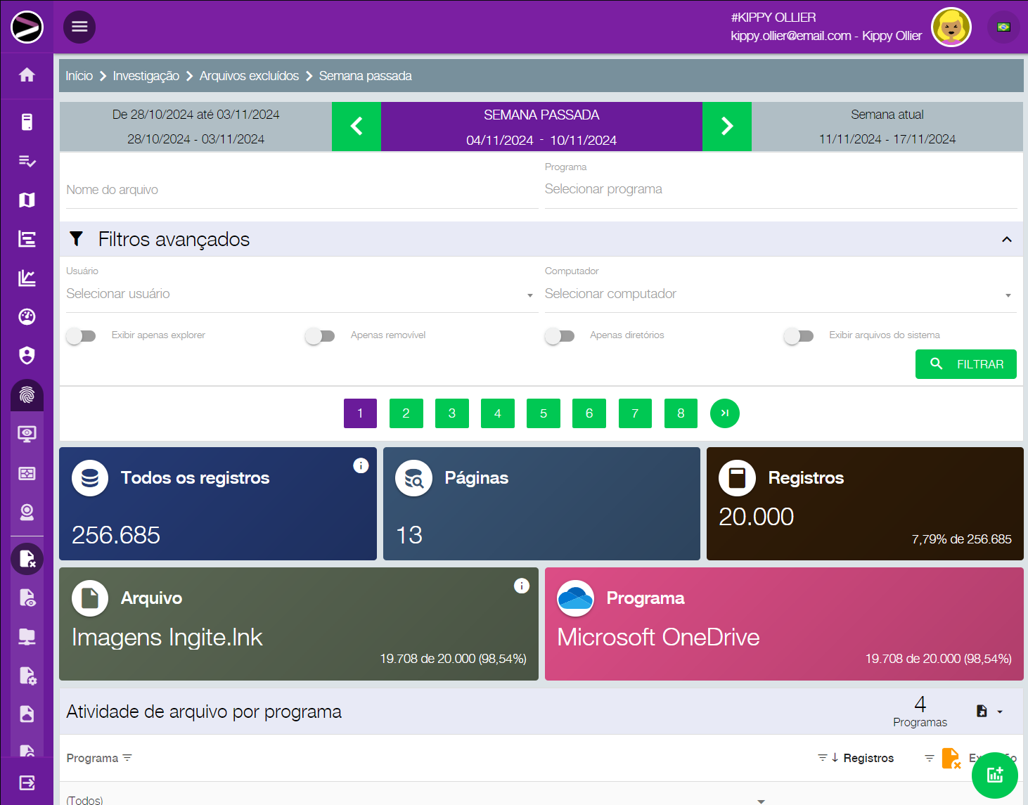 Precisa fazer uma busca por algo digitado por algum colaborador, ou mesmo acessar tudo digitado por alguém em determinada data? Precisa saber todos os sites acessados, os navegadores utilizados, qual período, qual usuário ou dispositivo? Um determinado arquivo sumiu da rede, você precisa investigar como, quando, por quem e por quê?