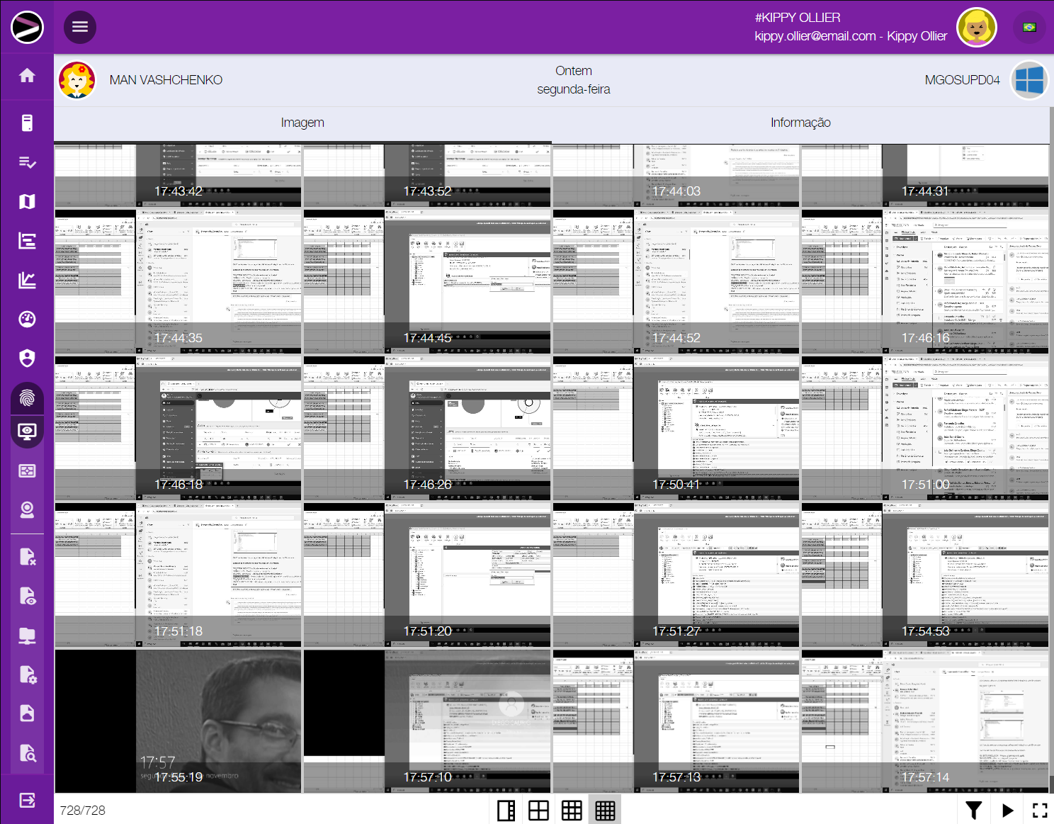Monitora todas as ações do usuário do dispositivo, capturando todos os recursos.