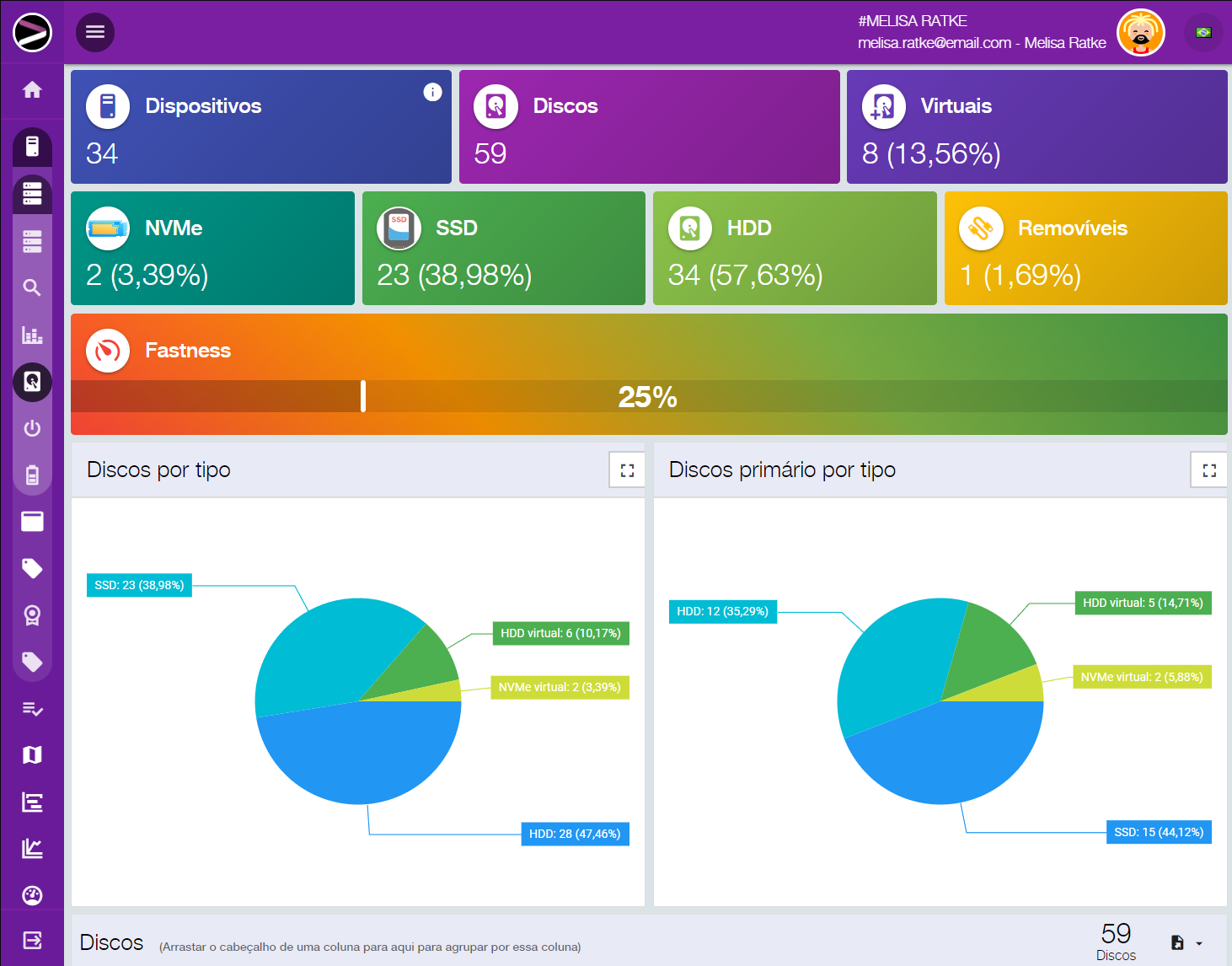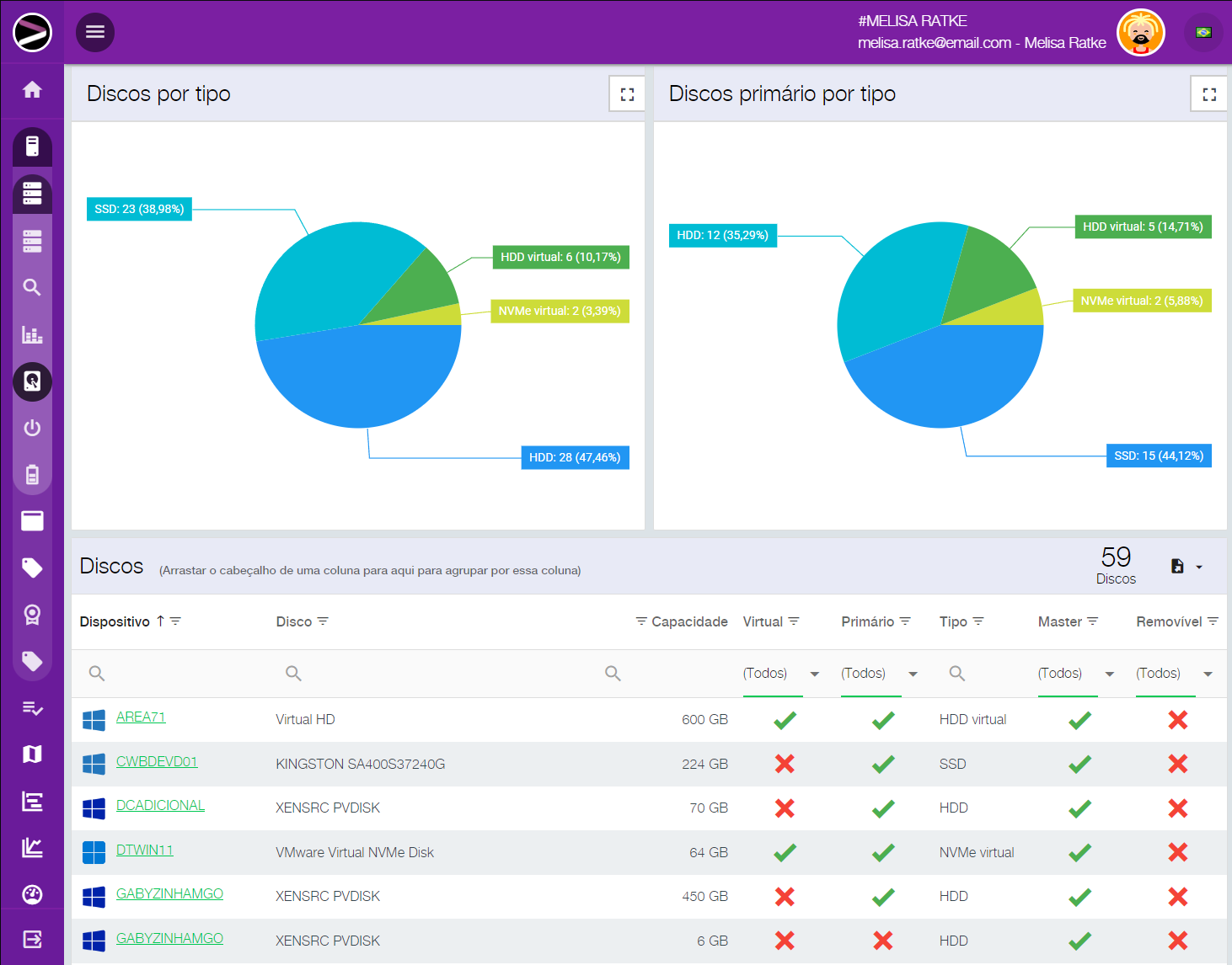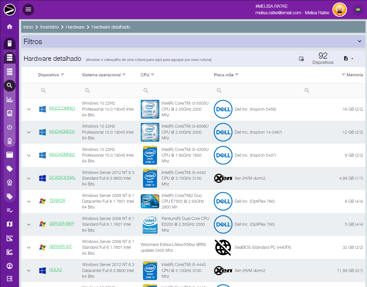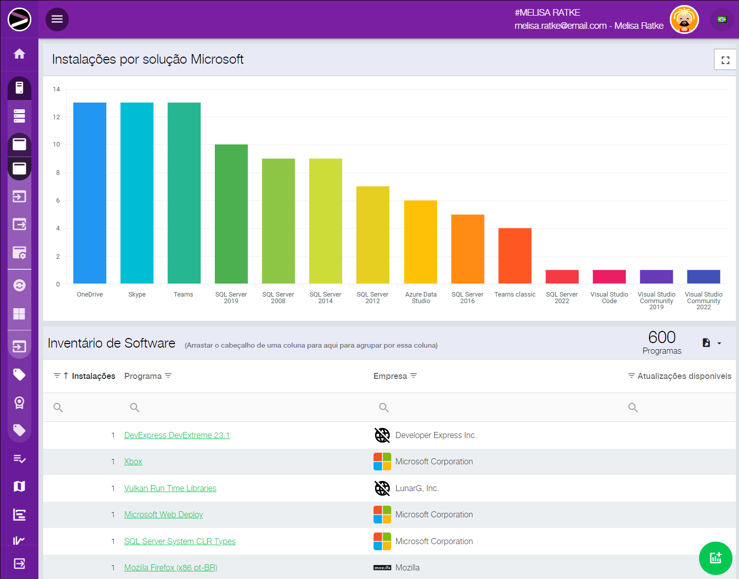 Você pode visualizar o inventário por região, grupo, departamento, exportar seus dados para integração com outros sistemas, tudo de forma intuitiva com poucos cliques. De forma fácil você pode pesquisar onde determinado software está instalado, sua versão, e tomar decisões estratégicas voltadas a reduzir seu custo de licenciamento.