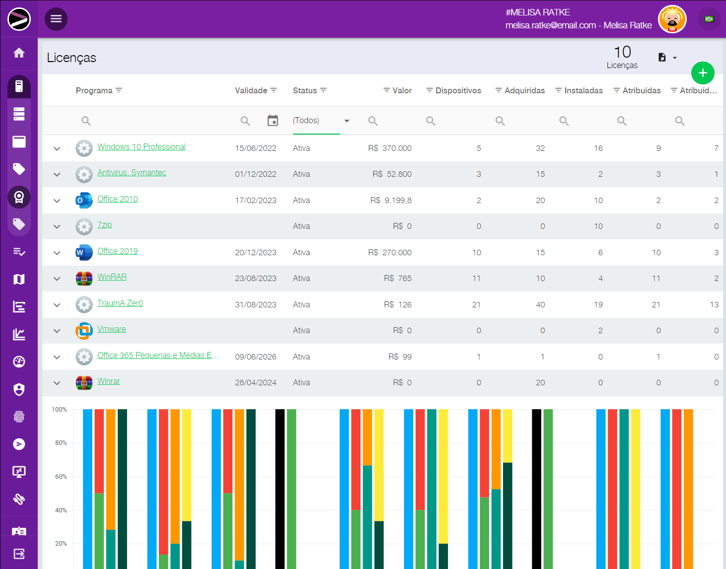 Uma grande dificuldade na gerência de TI é manter todas as licenças de software atualizadas de acordo com a necessidade da empresa. Garantir que os colaboradores não instalem software dos quais sua empresa não possui licença é tarefa ainda mais complexa.