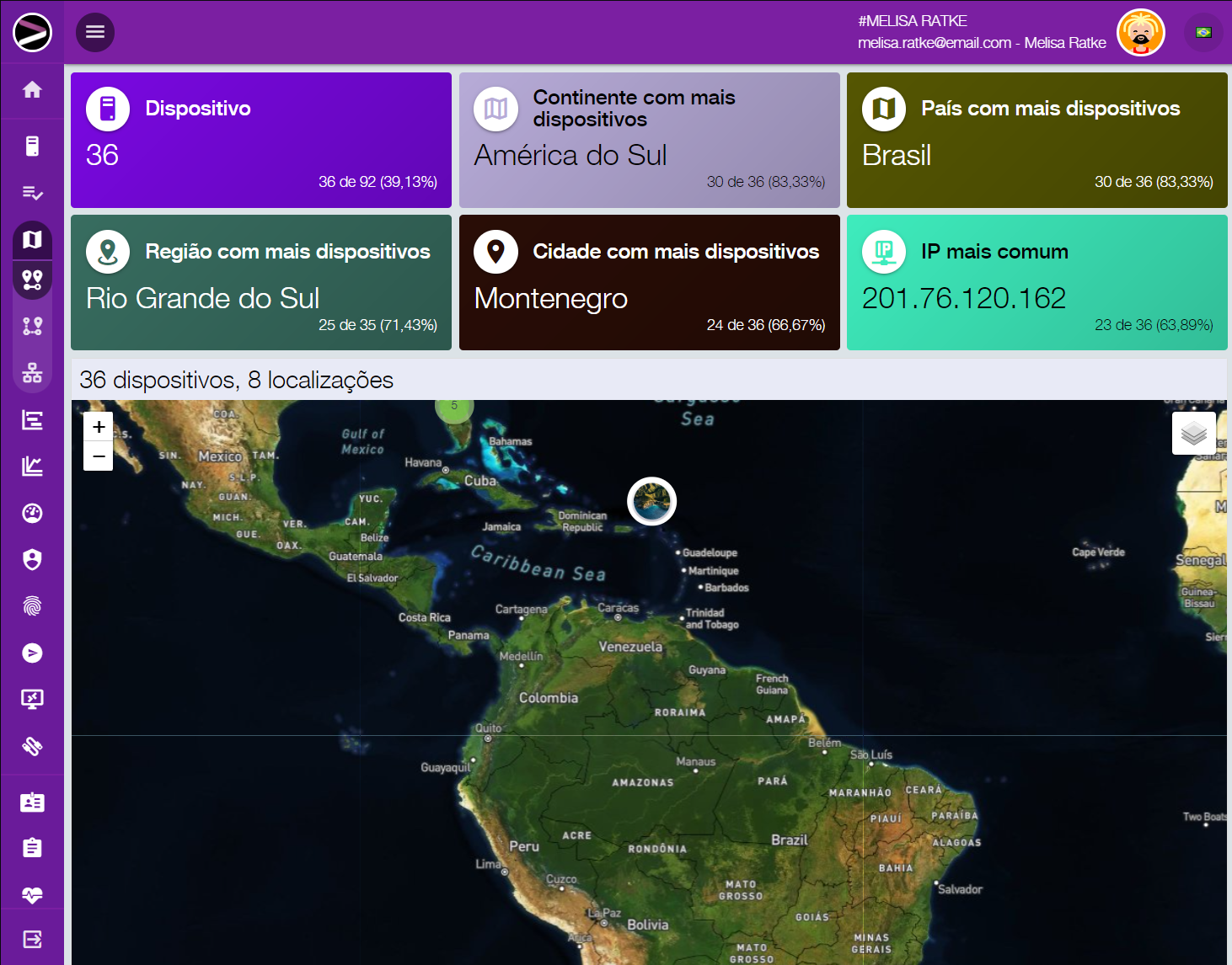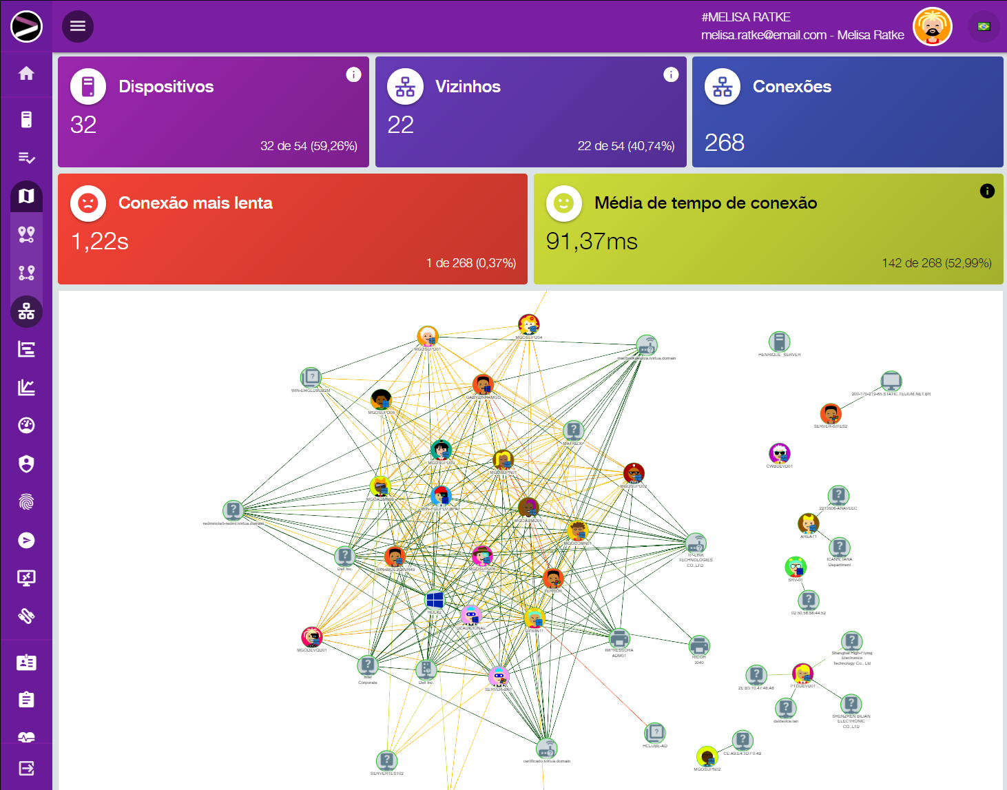 Como se ainda não bastasse, todo dispositivo é mapeado e monitorado geograficamente, independente de ter GPS, você passa a ter acesso a suas localizações bem como consegue explorar toda a sua rede, analisando a velocidade dos links, inter-relacionamento entre filiais, onde cada dispositivo se encontra, tudo em uma interface simples e intuitiva.